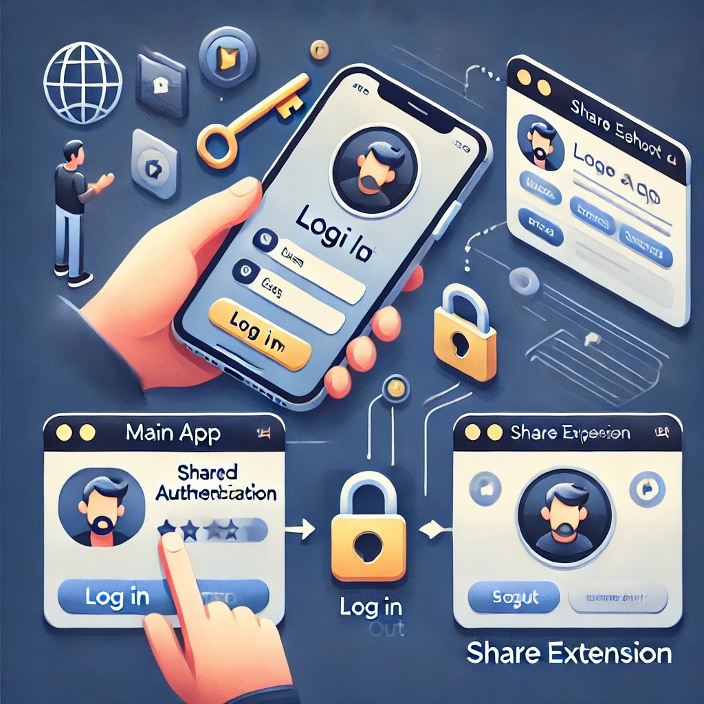 In XCode, the Share Extension (the entry into the Activity View) and the main app are treated as separate targets. To allow the Share Extension to check the user’s login state stored by the main app, I set up a shared group entitlement for the keychain. This setup allowed both the app and the Share Extension to access the same authentication state.